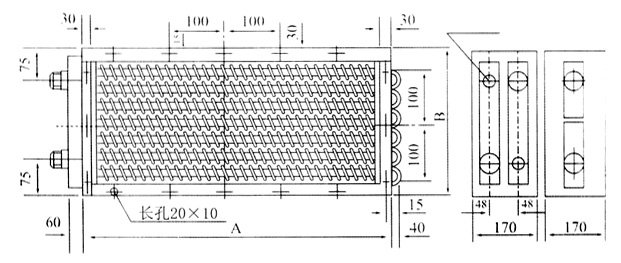 翅片管均用416×1mm紫銅管紅制上10×0.2mm的皺折紫銅帶而成,呈螺旋狀,具有3.2mm一“R”,4.2mm—“M”,6.5mm—“T”三種不同的片距, “R”種片別具匠心,片距小而散熱面積大具有大的散熱量;“M”種片距,片距較大,散熱量及空氣阻力均較??;“T”種片距,片距大,經(jīng)久耐用,安裝方便,經(jīng)濟合算。